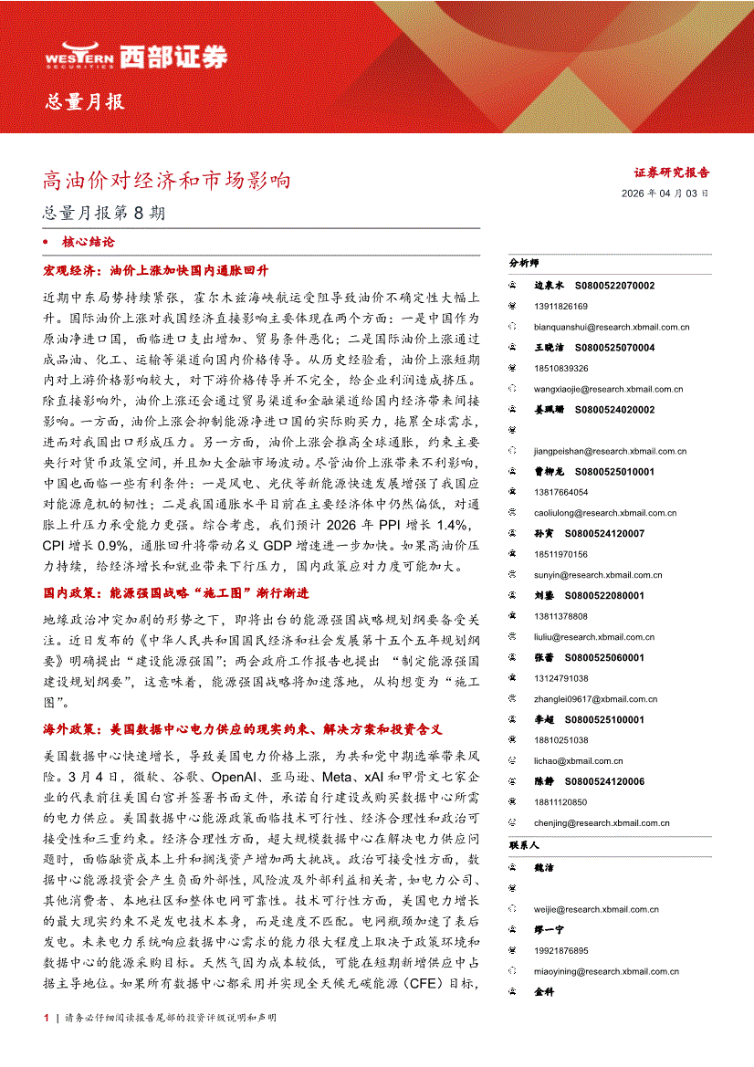 西部证券-总量月报第8期:高油价对经济和市场影响-260403