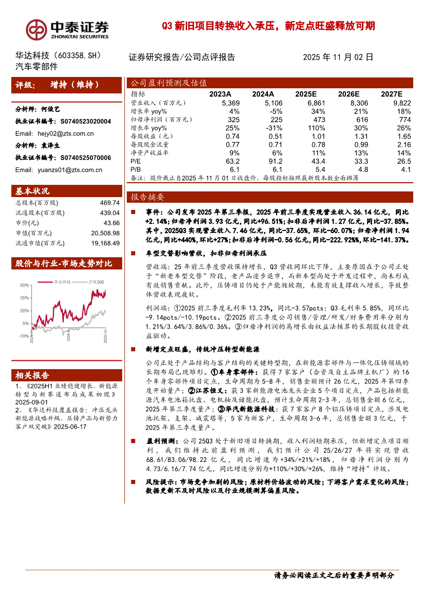 华达科技:中泰证券-华达科技-603358-Q3新旧项目转换收入承压,新定点旺盛释放可期-251102
