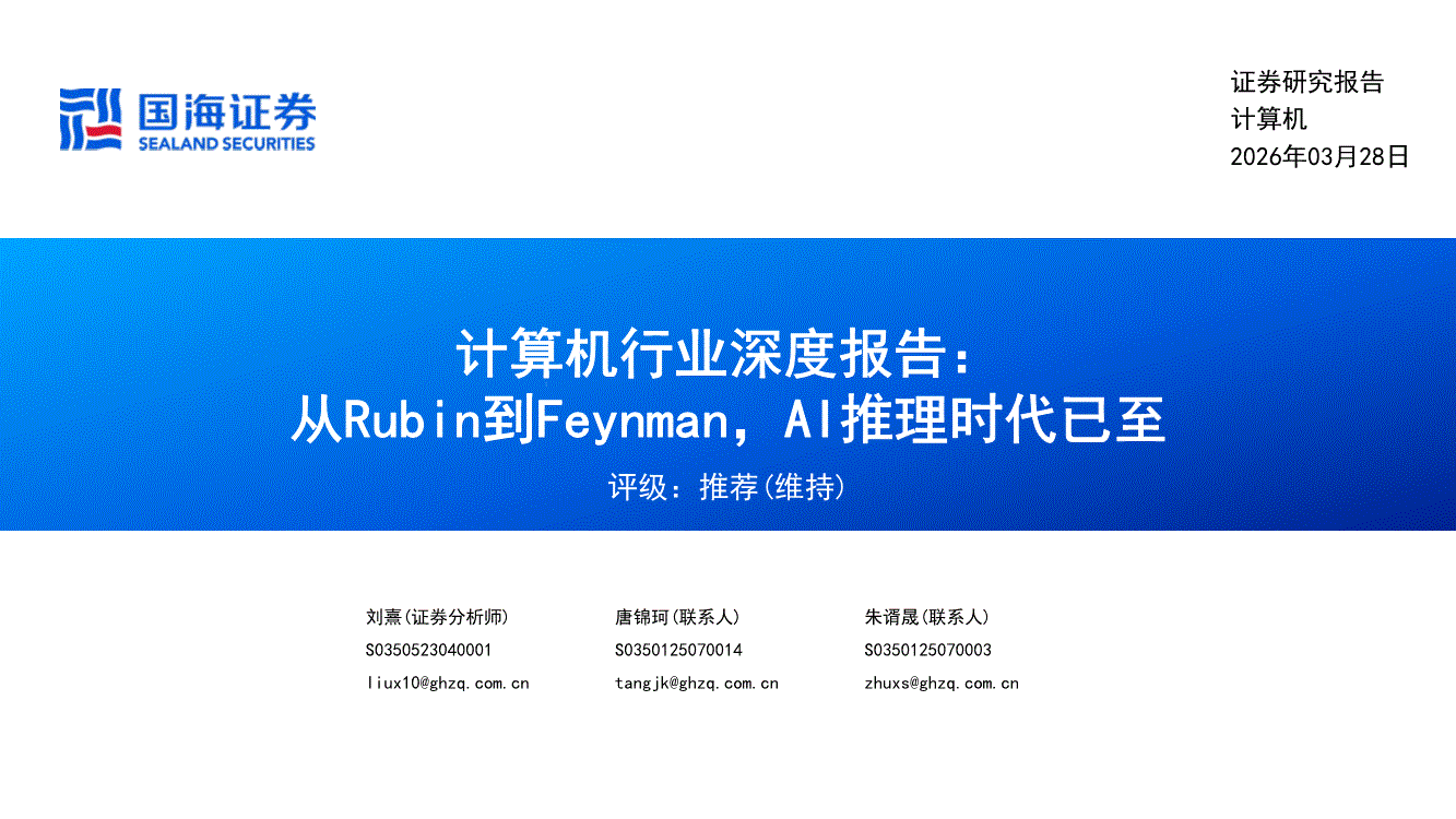 计算机行业:国海证券-计算机行业深度报告:从Rubin到Feynman,AI推理时代已至-260328