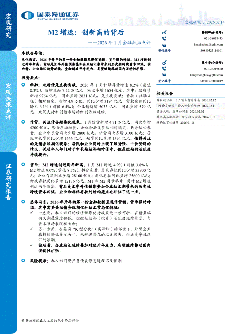 国泰海通证券-2026年1月金融数据点评:M2增速,创新高的背后-260214