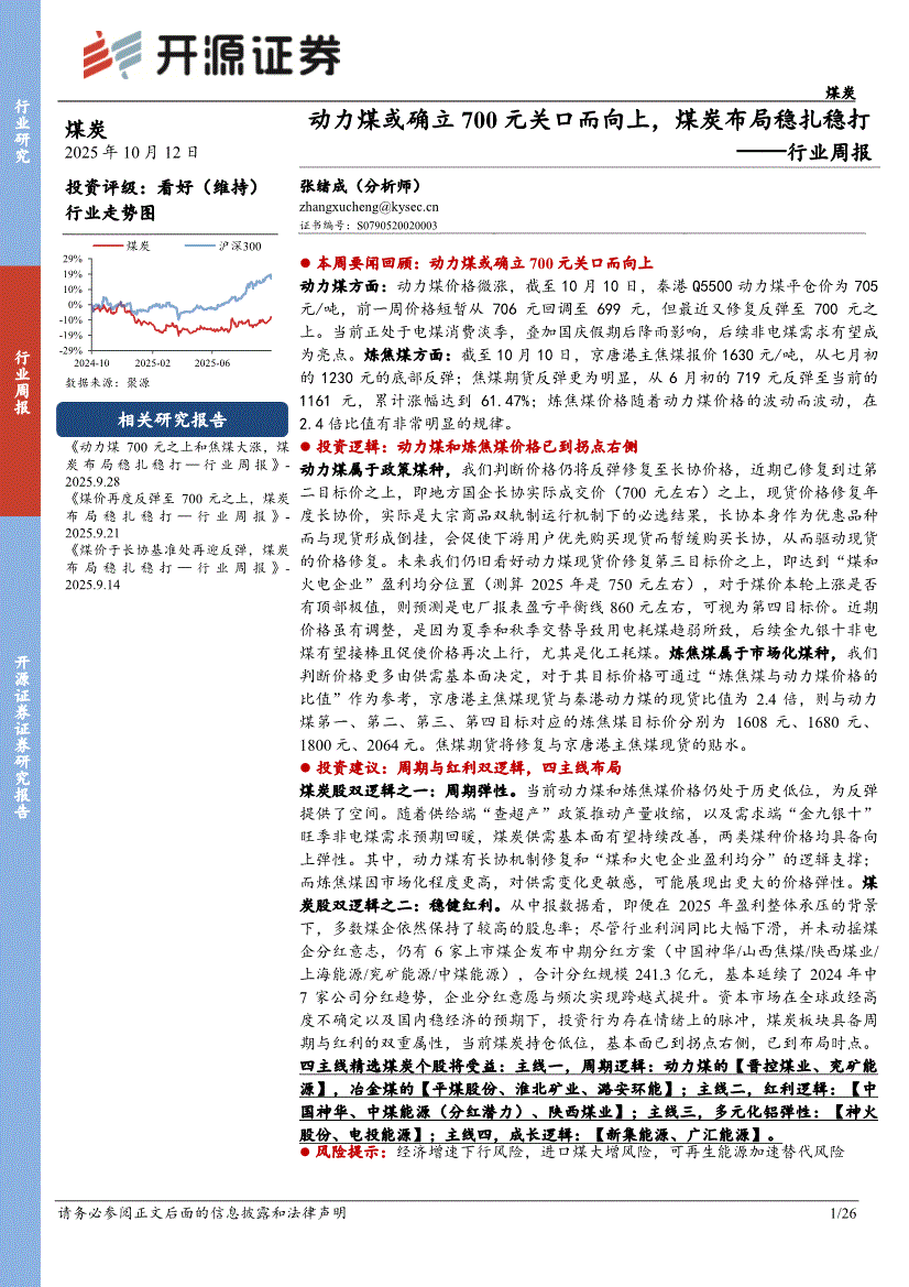 煤炭行业:开源证券-煤炭行业周报:动力煤或确立700元关口而向上,煤炭布局稳扎稳打-251012