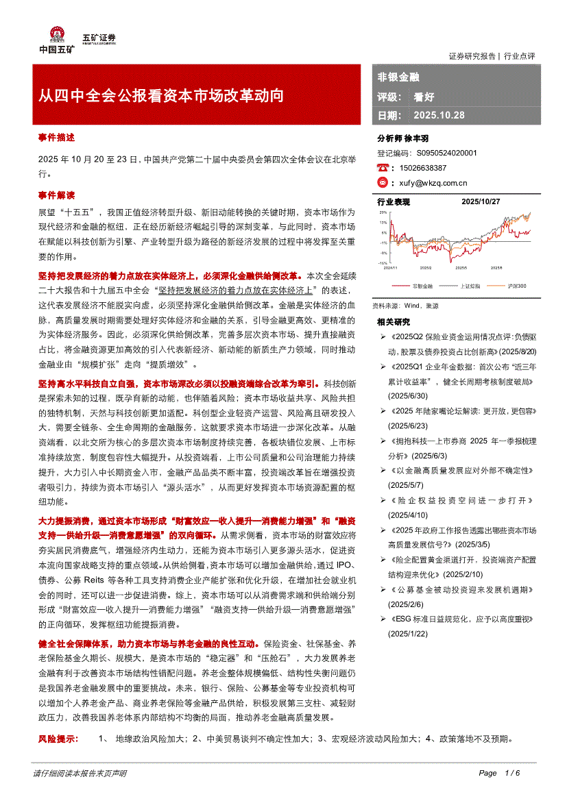 非银金融行业:五矿证券-非银金融行业:从四中全会公报看资本市场改革动向-251028