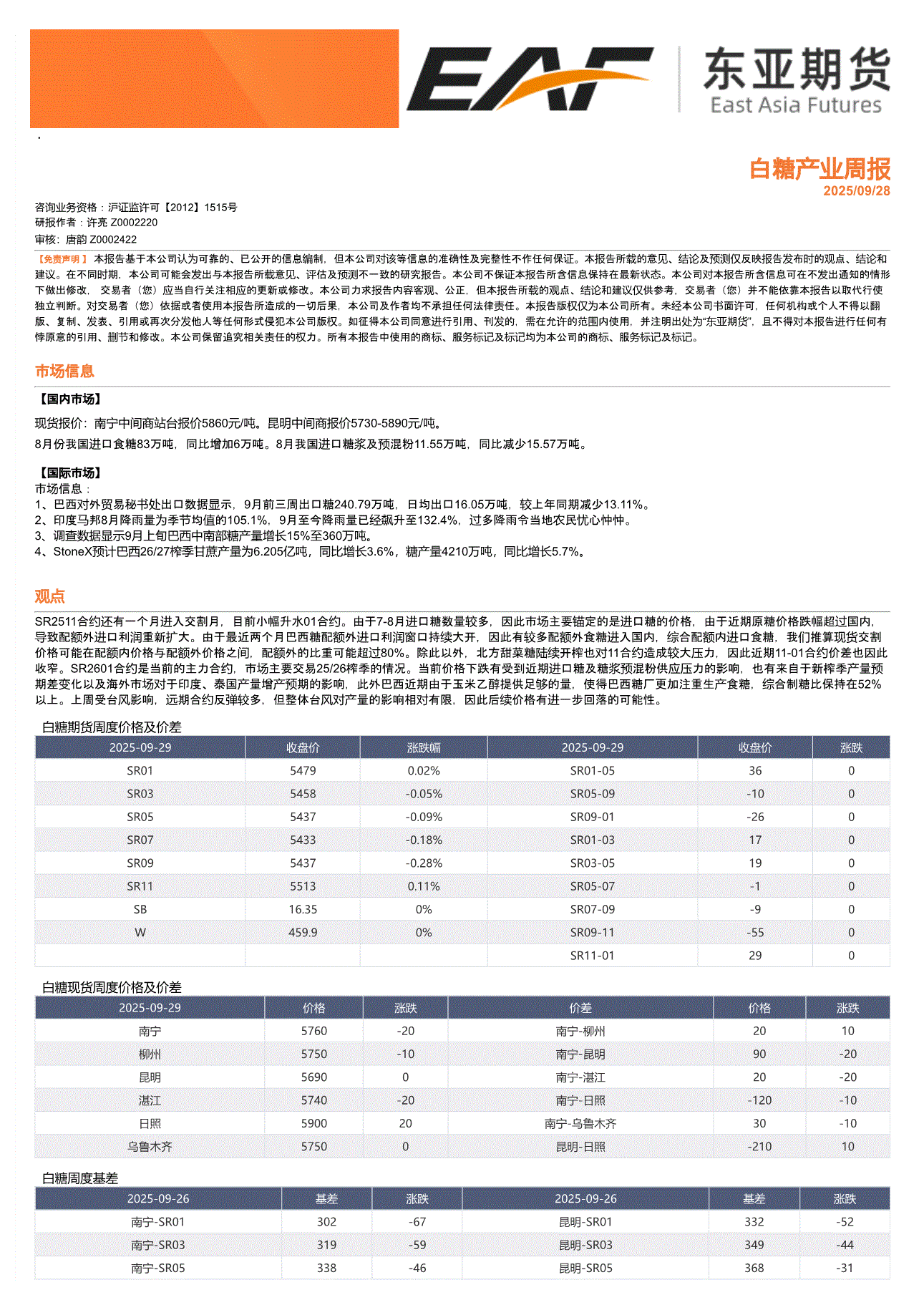 上海东亚期货-白糖产业周报-250928