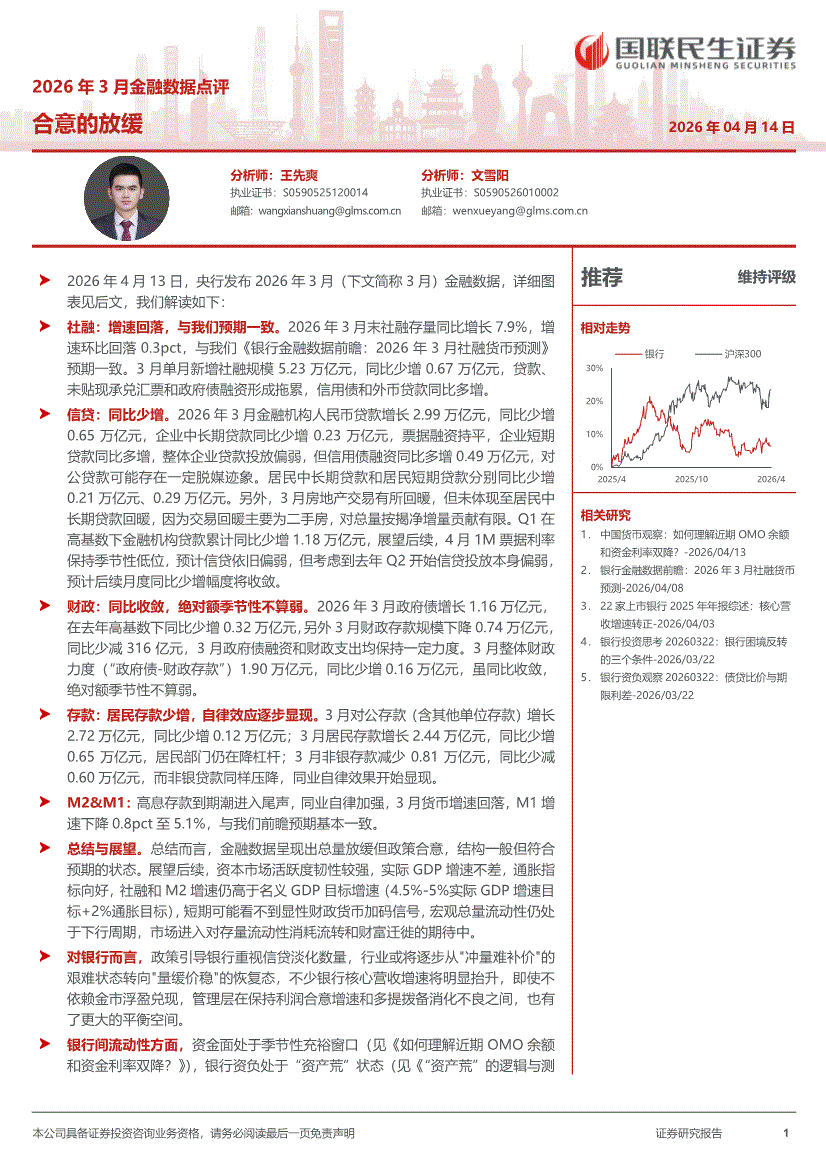 银行业:国联民生证券-银行业2026年3月金融数据点评:合意的放缓-260414