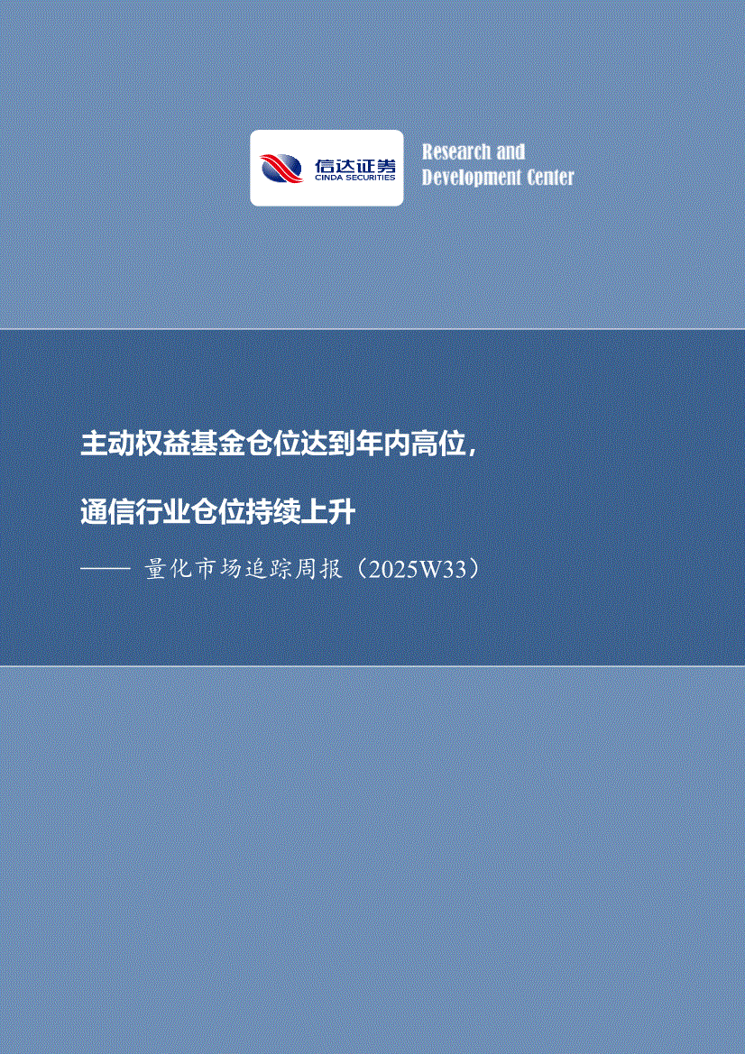 信达证券-量化市场追踪周报(2025W33):主动权益基金仓位达到年内高位, 通信行业仓位持续上升-250818