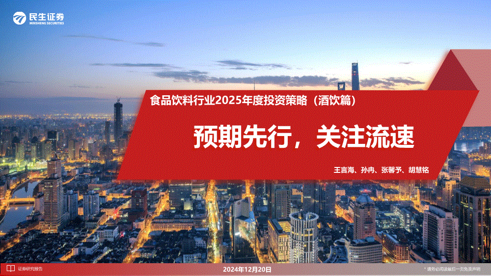 食品饮料行业:民生证券-食品饮料行业2025年度投资策略(酒饮篇):预期先行,关注流速-241220