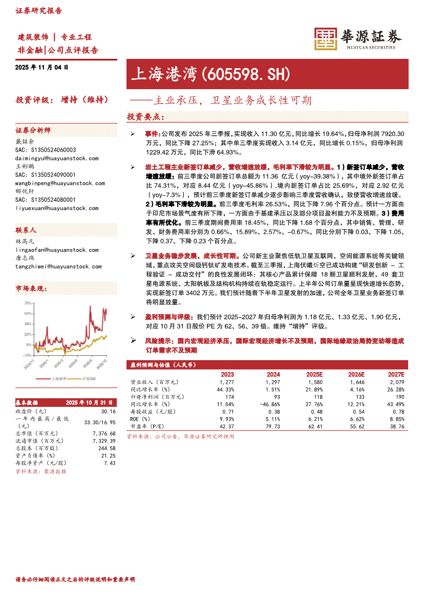上海港湾:华源证券-上海港湾-605598-主业承压,卫星业务成长性可期-251104