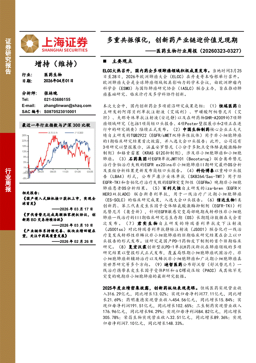 医药生物行业:上海证券-医药生物行业周报:多重共振催化,创新药产业链迎价值兑现期-260401