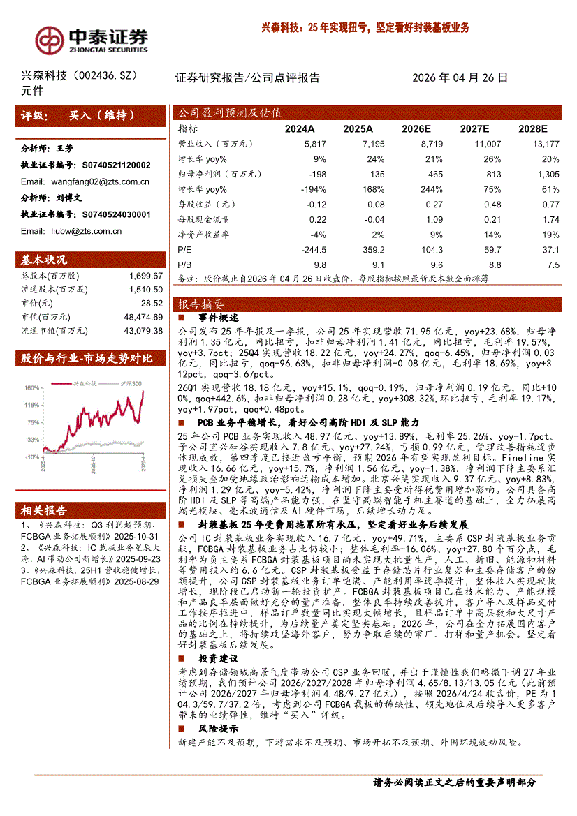 兴森科技:中泰证券-兴森科技-002436-25年实现扭亏,坚定看好封装基板业务-260426