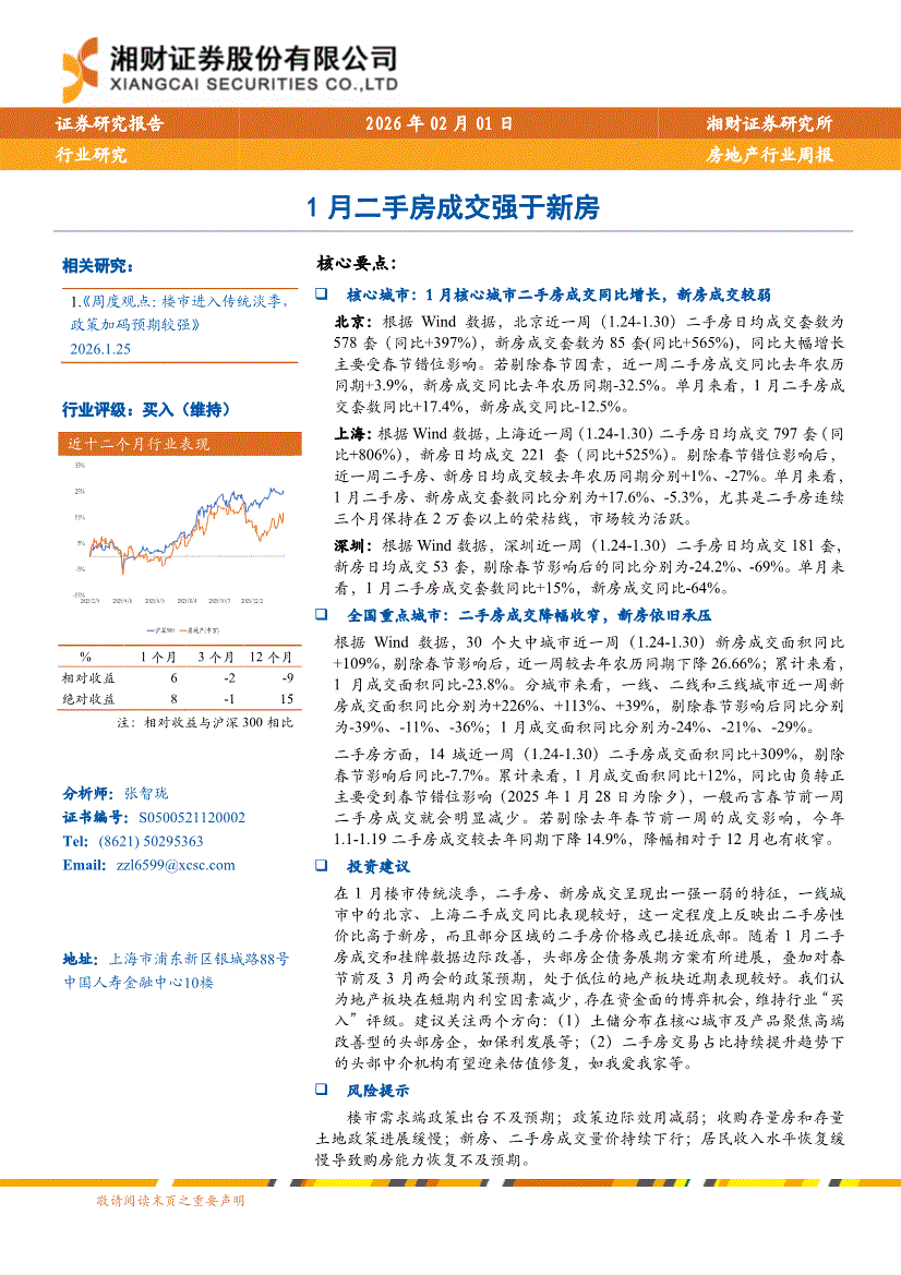 房地产行业:湘财证券-房地产行业周报:1月二手房成交强于新房-260201