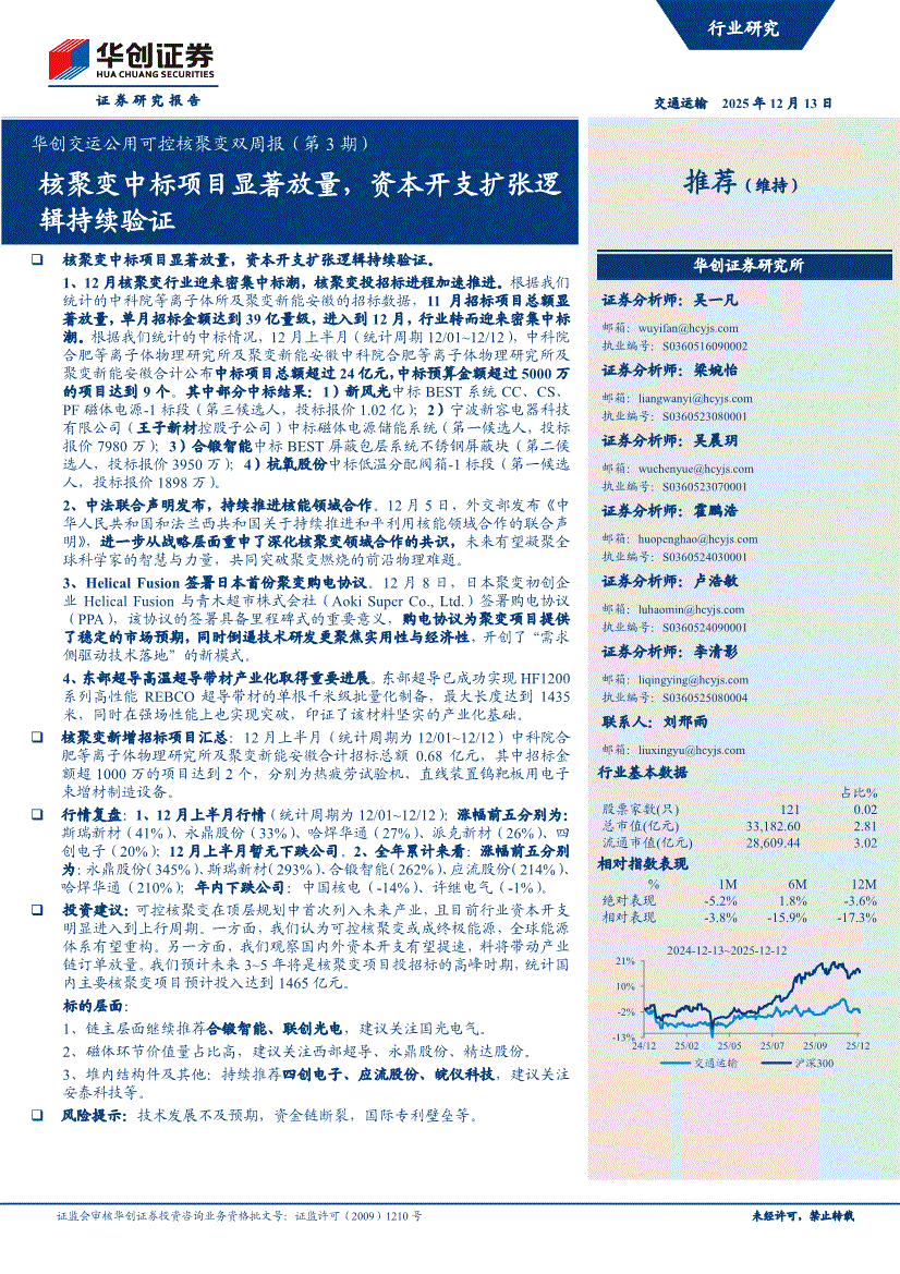 交通运输行业:华创证券-华创交运公用可控核聚变双周报(第3期):核聚变中标项目显著放量,资本开支扩张逻辑持续验证-251213