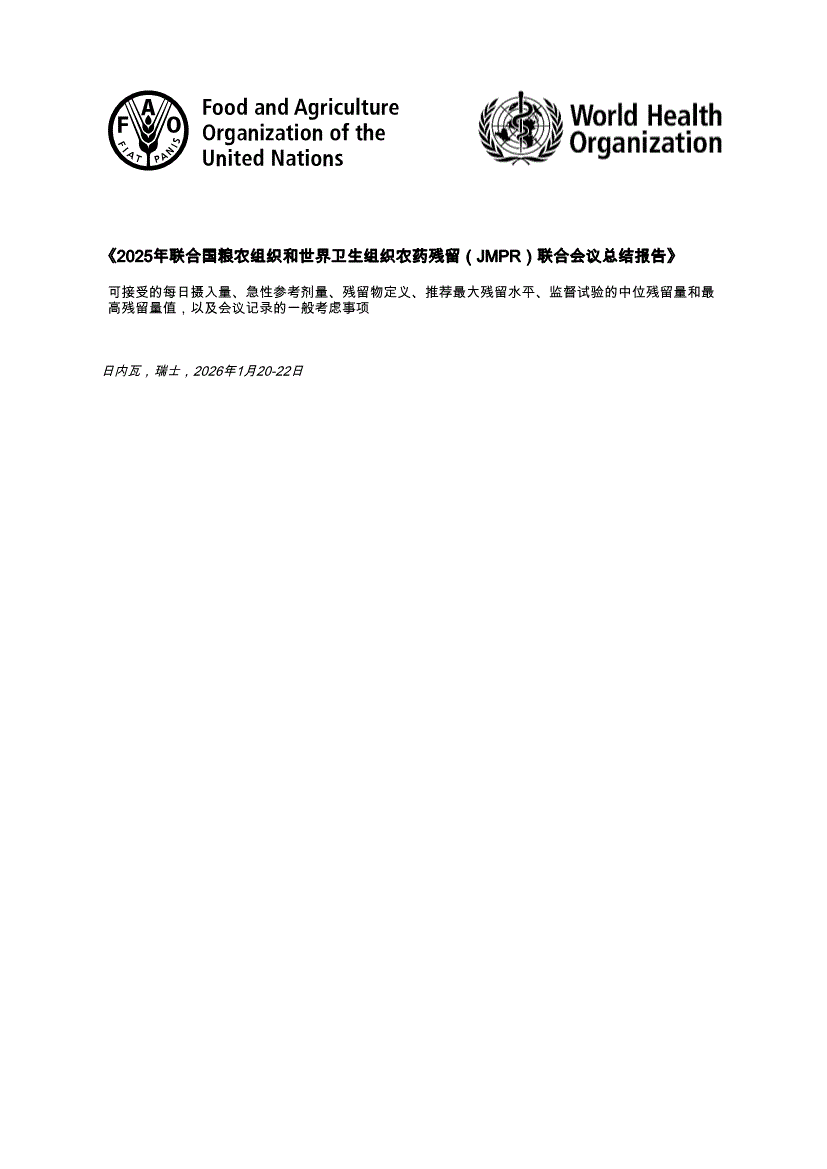 农药行业:世界卫生组织-农药行业2025年粮农组织:世界卫生组织农药残留联合会议(JMPR)总结报告(英译中)-260214