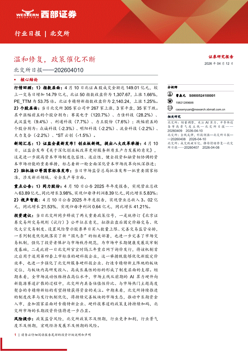 西部证券-北交所日报:温和修复,政策催化不断-260412