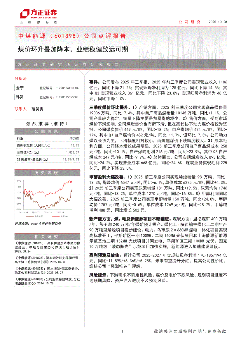 中煤能源:方正证券-中煤能源-601898-公司点评报告:煤价环升叠加降本,业绩稳健致远可期-251028