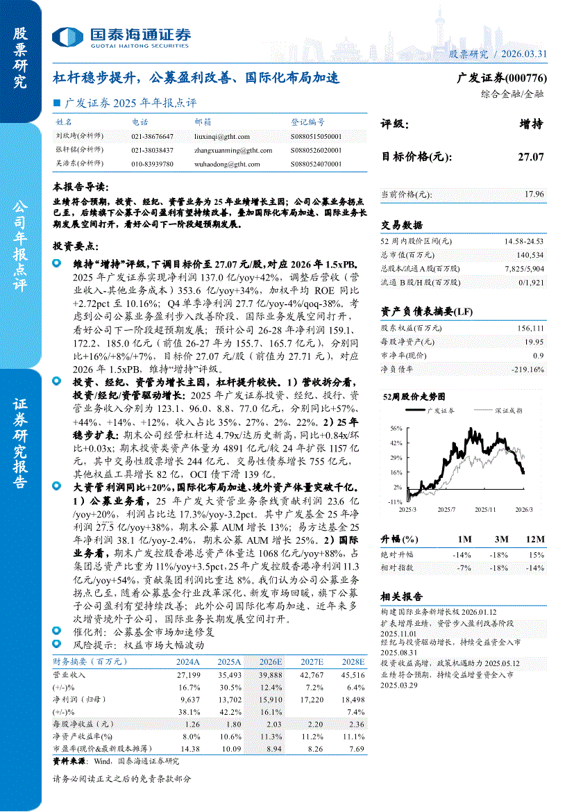 广发证券:国泰海通证券-广发证券-000776-2025年年报点评:杠杆稳步提升,公募盈利改善、国际化布局加速-260331