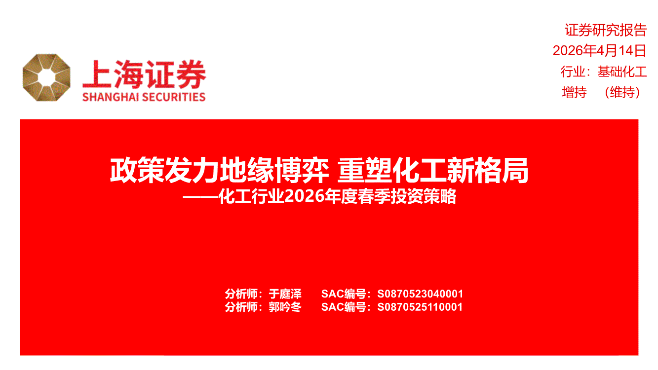 化工行业:上海证券-化工行业2026年度春季投资策略:政策发力地缘博弈,重塑化工新格局-260414