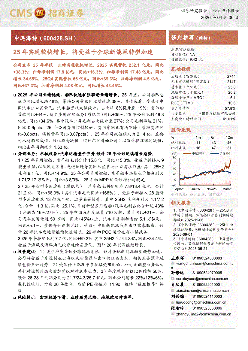 中远海特:招商证券-中远海特-600428-25年实现较快增长,将受益于全球新能源转型加速-260406
