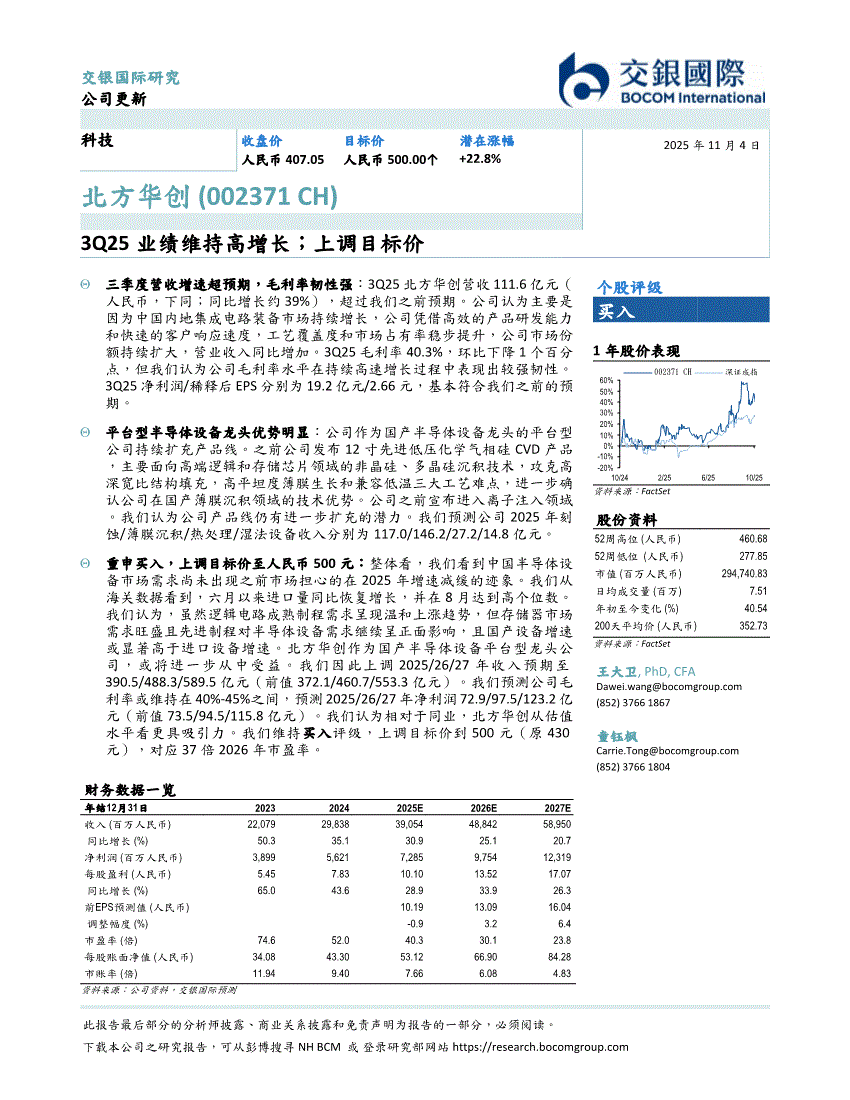 北方华创:交银国际-北方华创-002371-3Q25业绩维持高增长;上调目标价-251104
