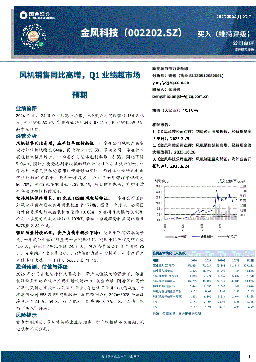 金风科技:国金证券-金风科技-002202-风机销售同比高增,Q1业绩超市场预期-260426