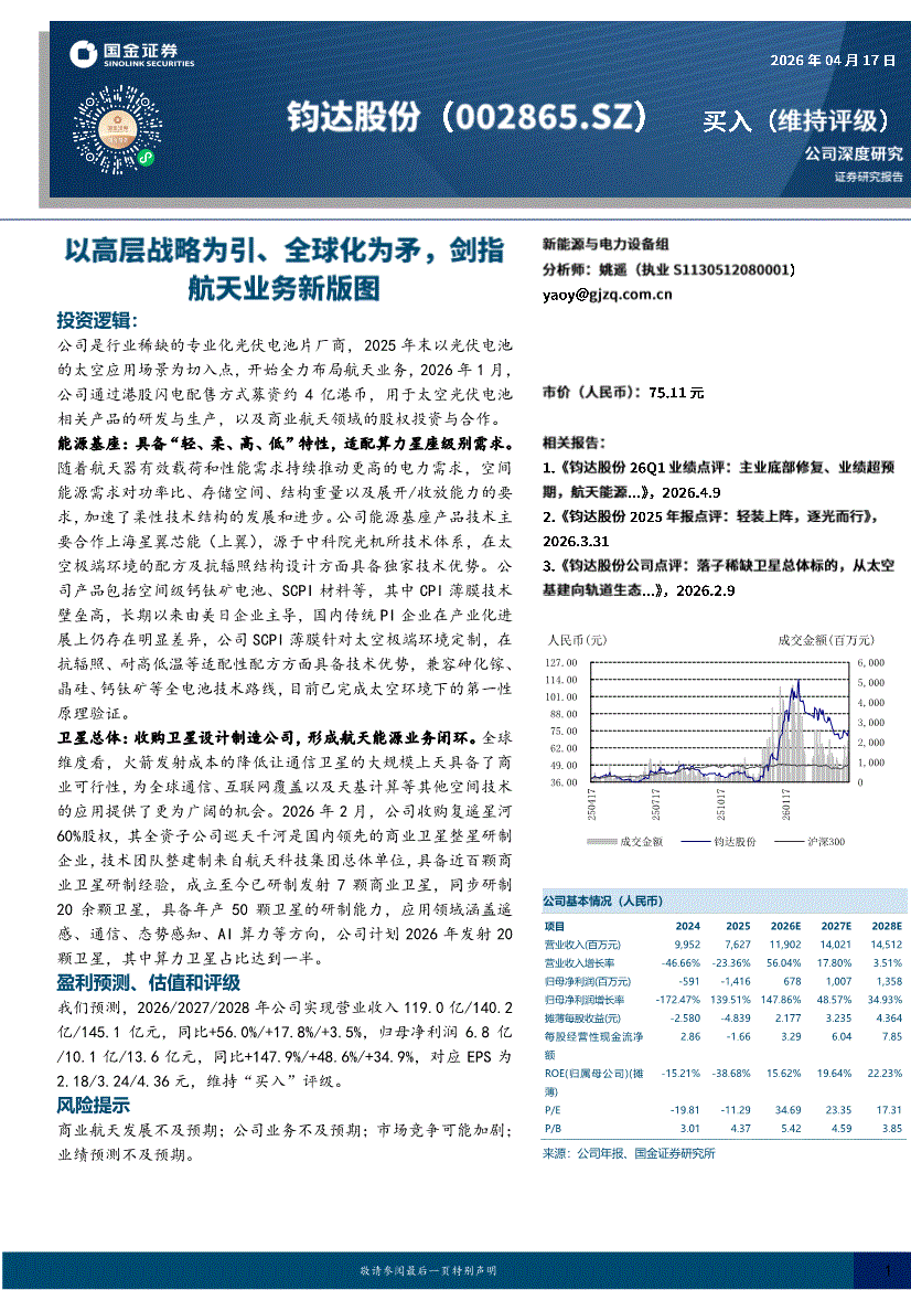 钧达股份:国金证券-钧达股份-002865-以高层战略为引、全球化为矛,剑指航天业务新版图-260417
