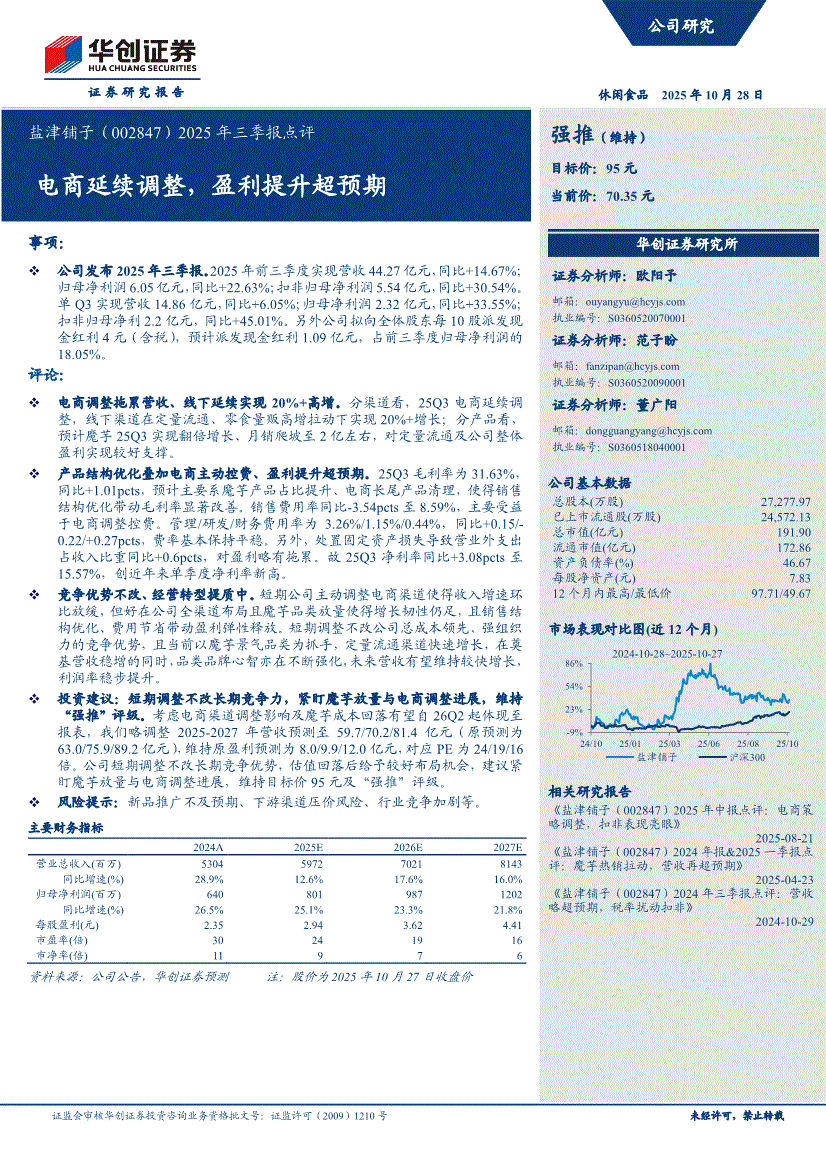 盐津铺子:华创证券-盐津铺子-002847-2025年三季报点评:电商延续调整,盈利提升超预期-251028