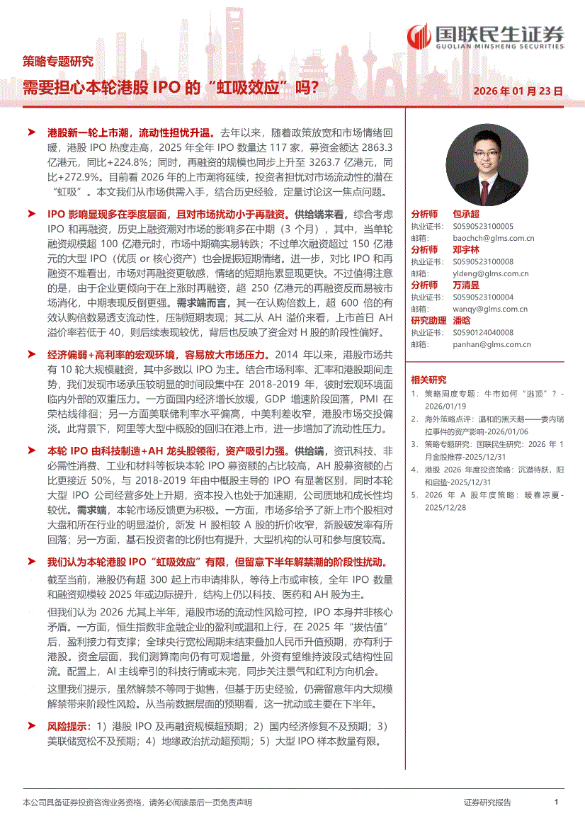 国联民生证券-策略专题研究:需要担心本轮港股IPO的“虹吸效应”吗?-260123