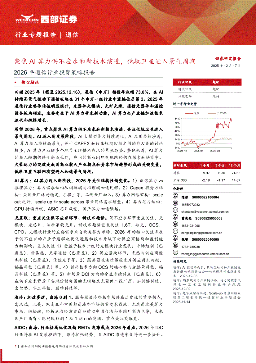 通信行业:西部证券-2026年通信行业投资策略报告:聚焦AI算力供不应求和新技术演进,低轨卫星进入景气周期-251217