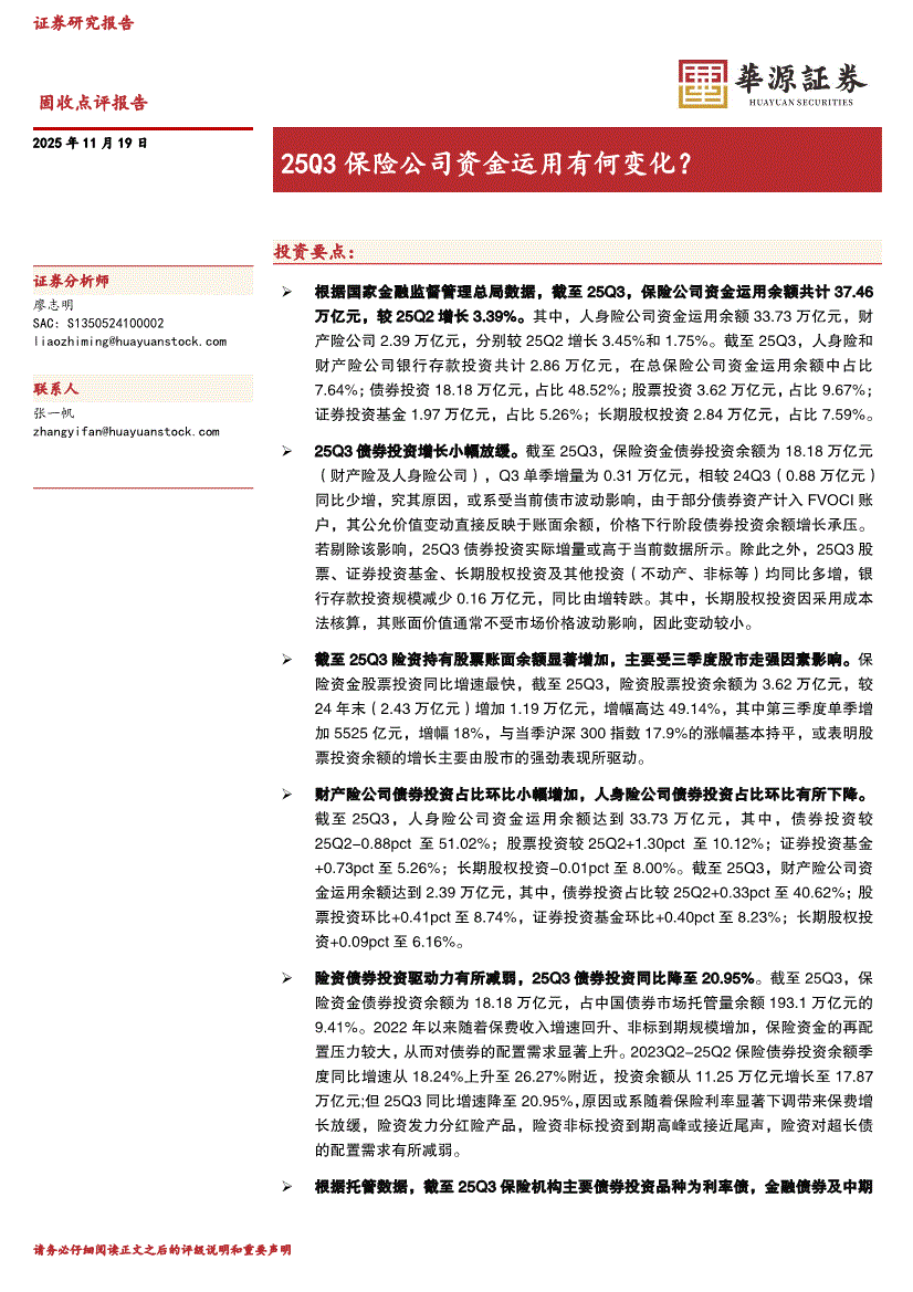 华源证券-25Q3保险公司资金运用有何变化?-251119