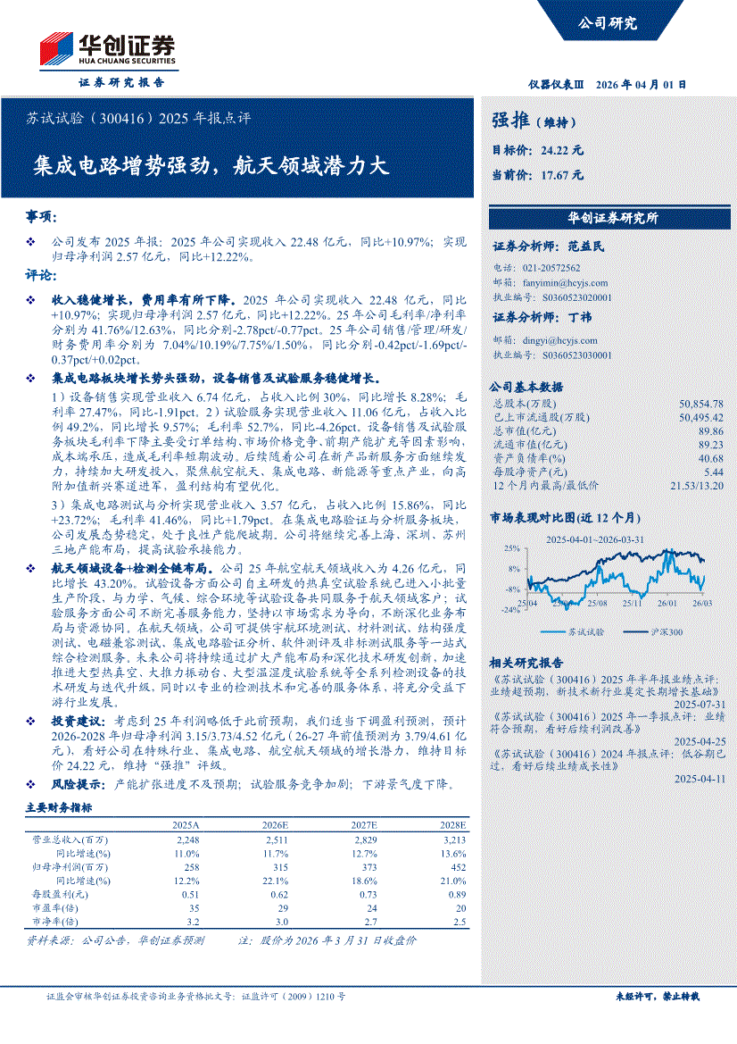 苏试试验:华创证券-苏试试验-300416-2025年报点评:集成电路增势强劲,航天领域潜力大-260401