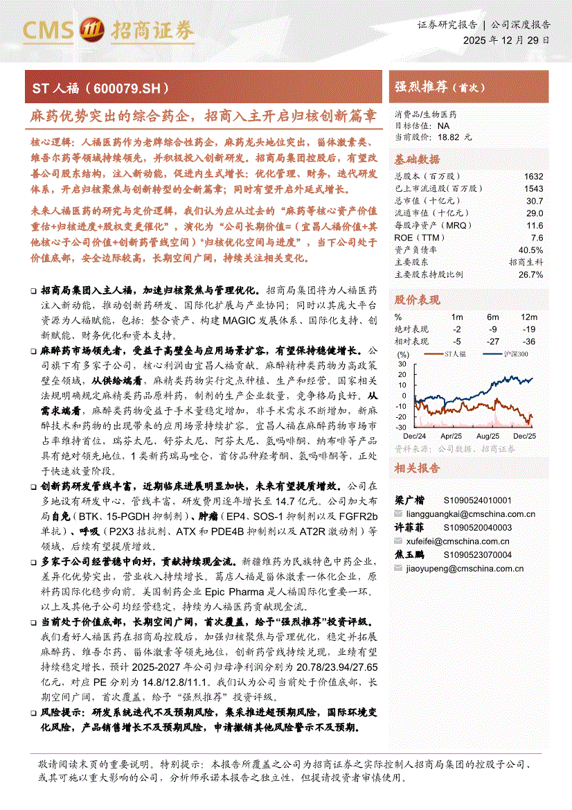 ST人福:招商证券-ST人福-600079-麻药优势突出的综合药企,招商入主开启归核创新篇章-251229