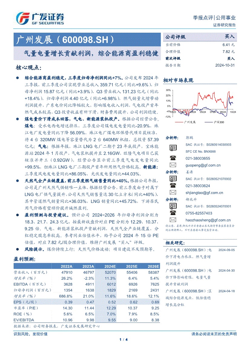 广州发展:广发证券-广州发展-600098-气量电量增长贡献利润,综合能源商盈利稳健-241031
