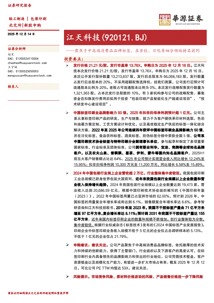 江天科技:华源证券-江天科技-920121-聚焦于中高端消费品品牌标签,在食饮、日化等细分领域排名前列-251214
