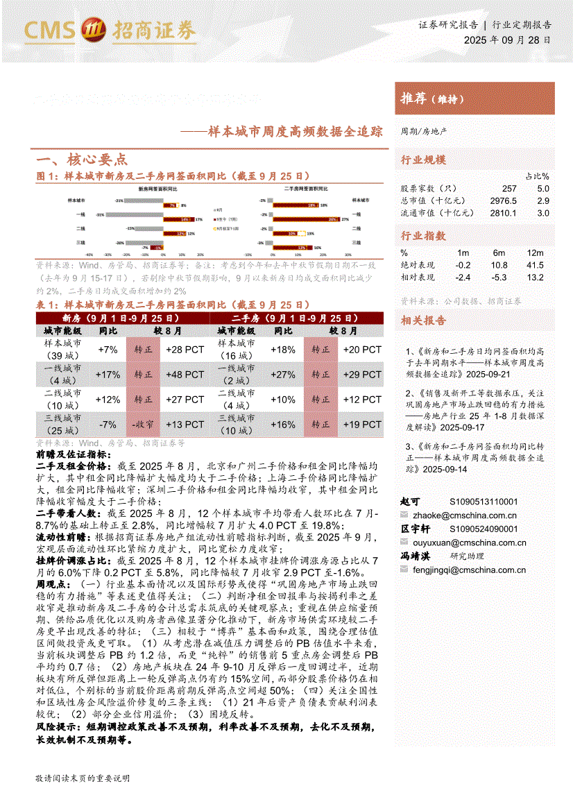 房地产行业:招商证券-房地产行业样本城市周度高频数据全追踪:二手房日均网签面积高于去年同期水平-250928