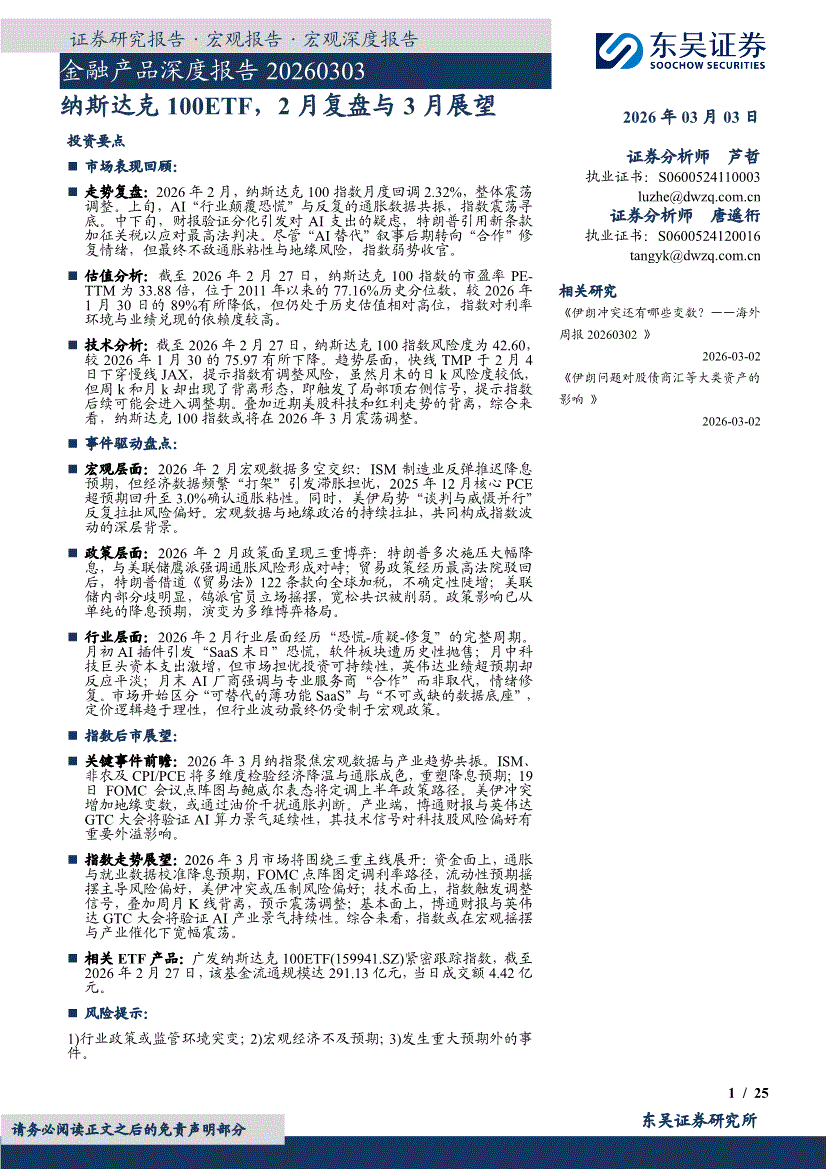 东吴证券-金融产品深度报告:纳斯达克100ETF,2月复盘与3月展望-260303