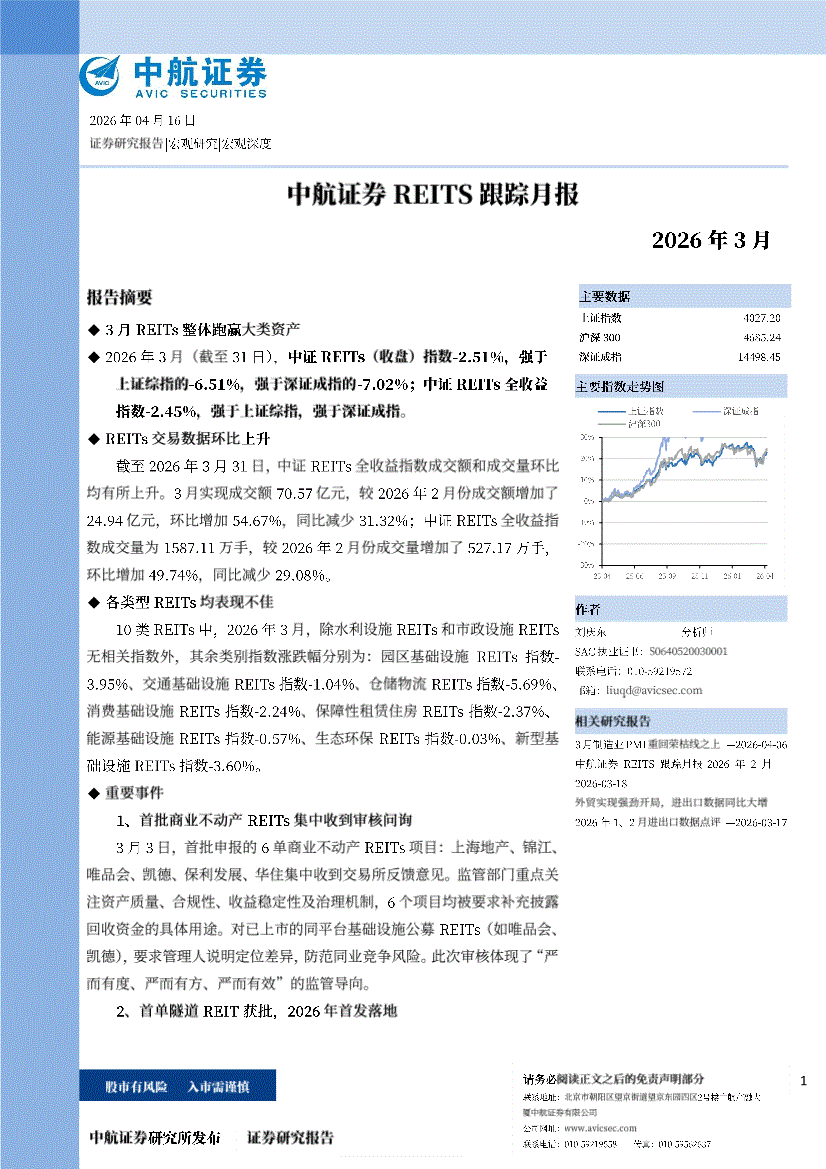中航证券-REITS跟踪月报:2026年3月-260416