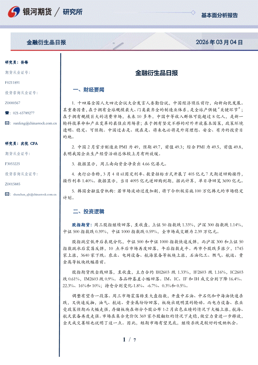 银河期货-金融衍生品日报-260304