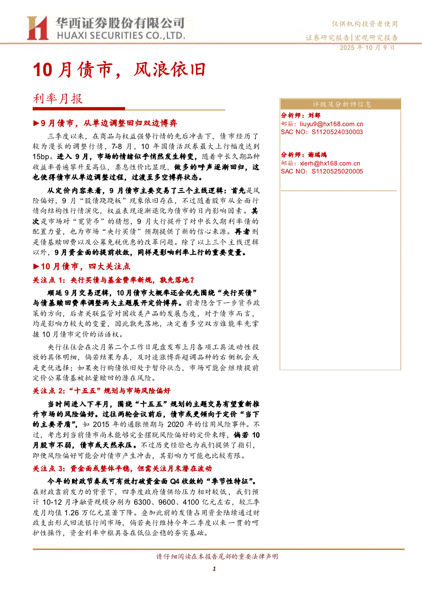 华西证券-利率月报:10月债市,风浪依旧-251009