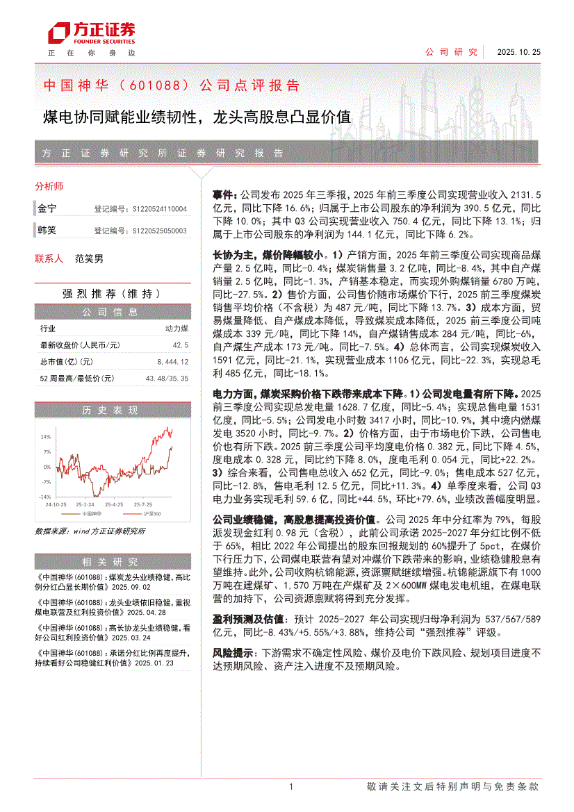 中国神华:方正证券-中国神华-601088-公司点评报告:煤电协同赋能业绩韧性,龙头高股息凸显价值-251025