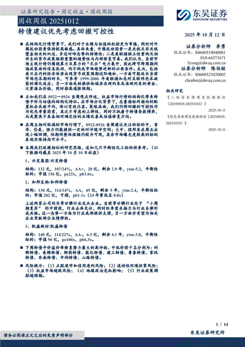 东吴证券-固收周报:转债建议优先考虑回撤可控性-251012