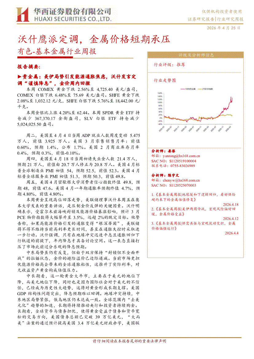 华西证券-有色~基本金属行业周报:沃什鹰派定调,金属价格短期承压-260425