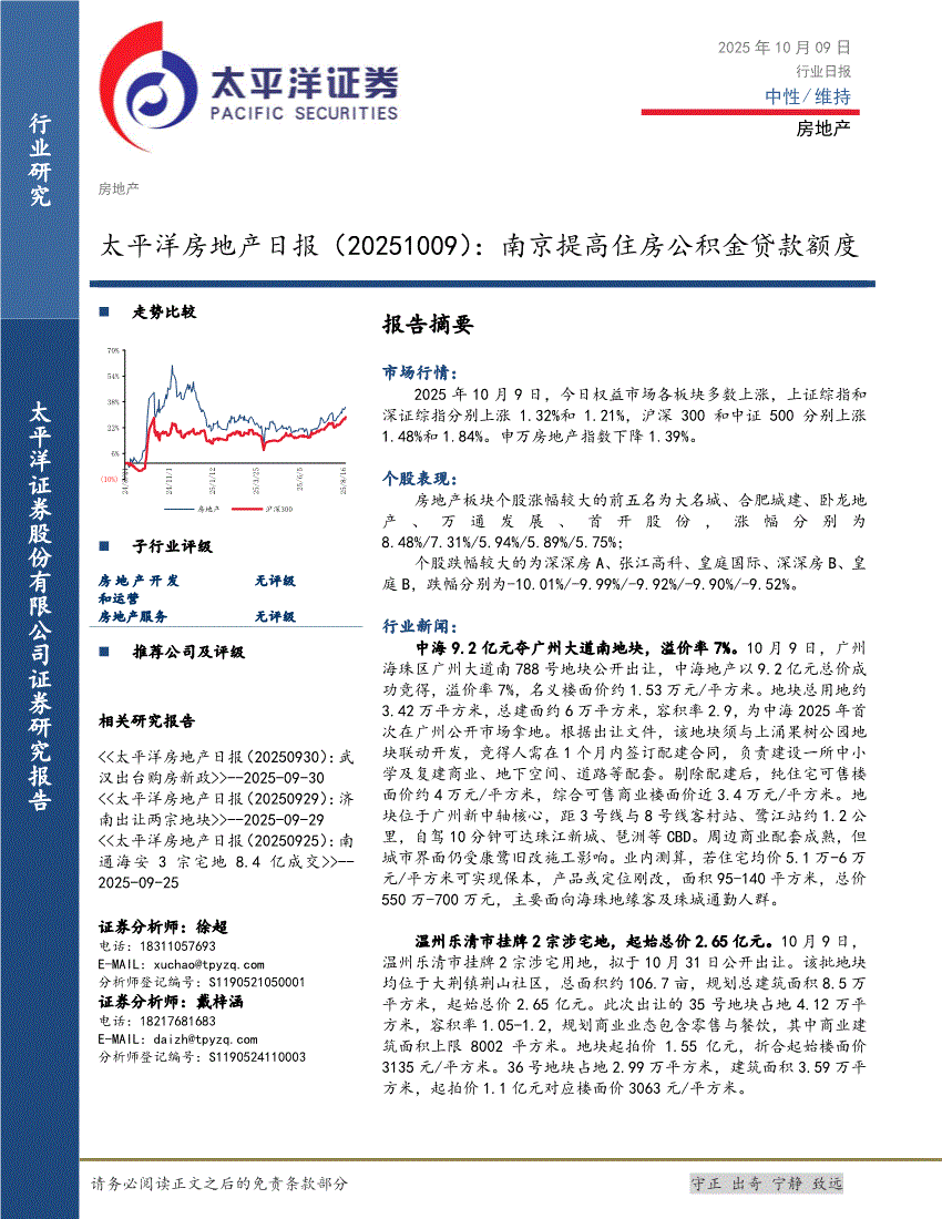 太平洋证券-房地产行业日报:南京提高住房公积金贷款额度-251009