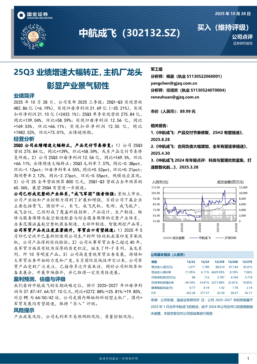 中航成飞:国金证券-中航成飞-302132-25Q3业绩增速大幅转正,主机厂龙头彰显产业景气韧性-251028