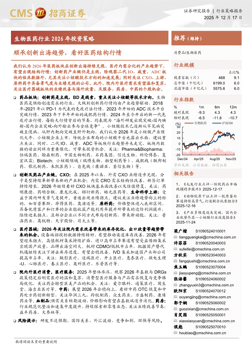 生物医药行业:招商证券-生物医药行业2026年投资策略:顺承创新出海趋势,看好医药结构行情-251217
