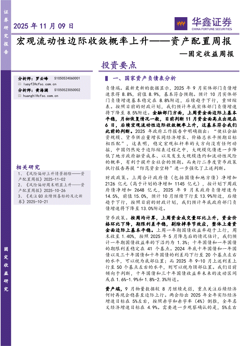 华鑫证券-固定收益周报:宏观流动性边际收敛概率上升——资产配置周报-251109