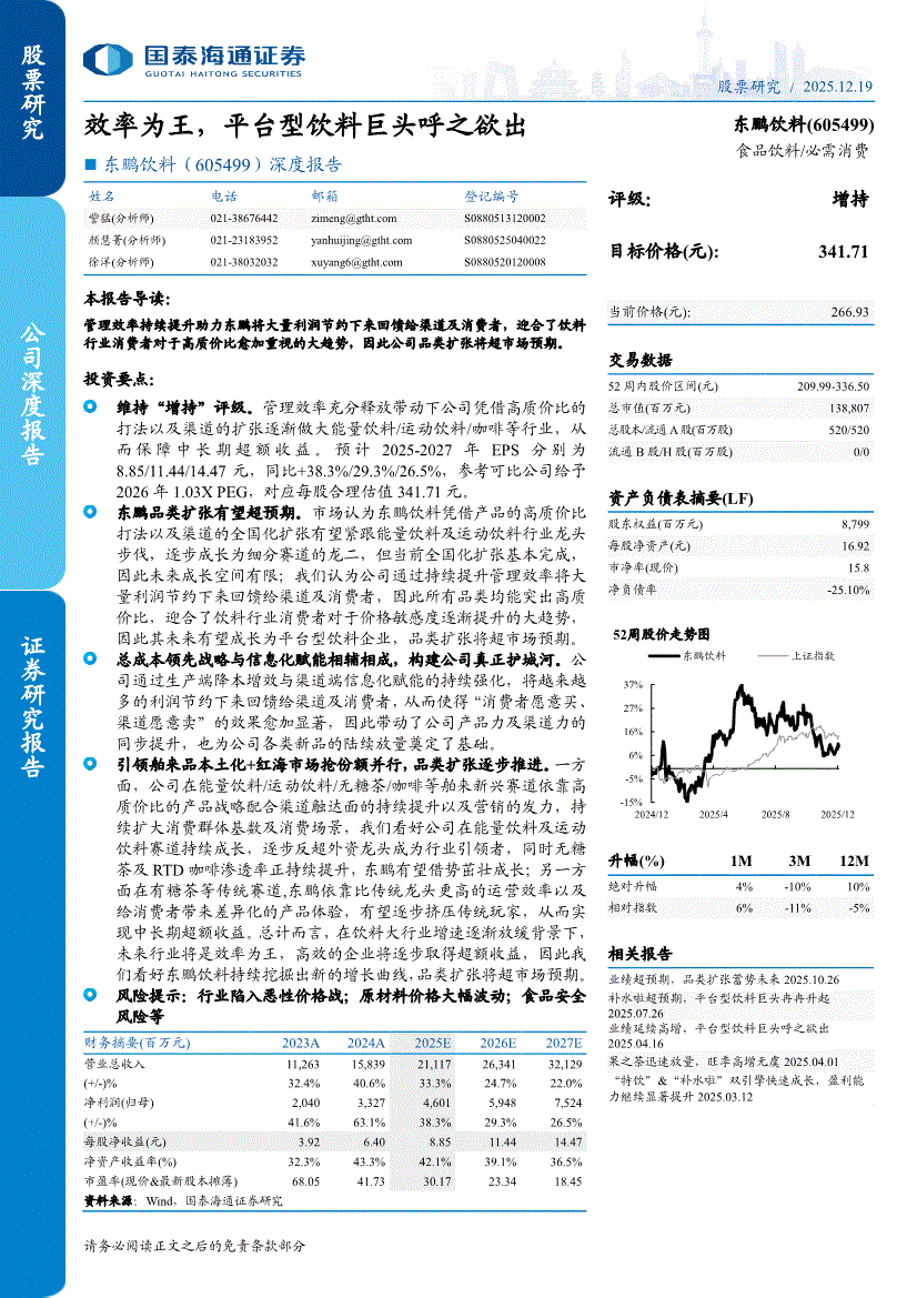 东鹏饮料:国泰海通证券-东鹏饮料-605499-深度报告:效率为王,平台型饮料巨头呼之欲出-251219