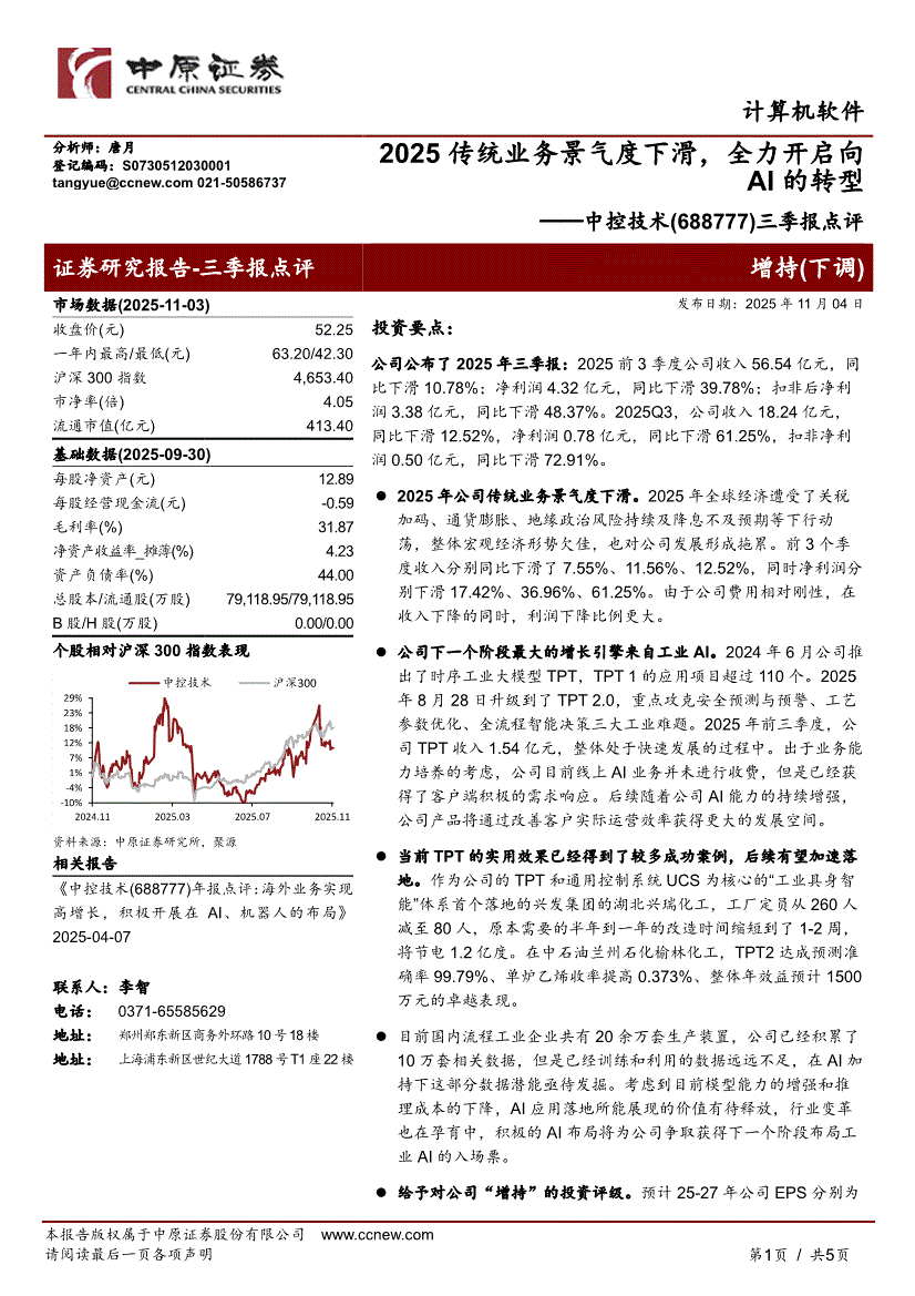 中控技术:中原证券-中控技术-688777-三季报点评:2025传统业务景气度下滑,全力开启向AI的转型-251104