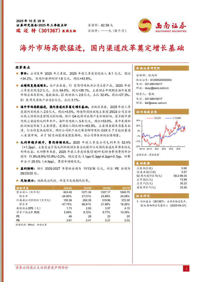 瑞迈特:西南证券-瑞迈特-301367-海外市场高歌猛进,国内渠道改革奠定增长基础-251028
