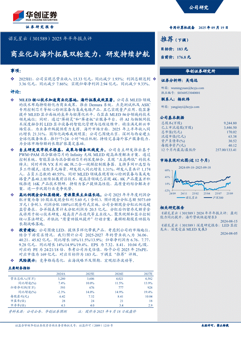 诺瓦星云:华创证券-诺瓦星云-301589-2025年半年报点评:商业化与海外拓展双轮发力,研发持续护航-250919