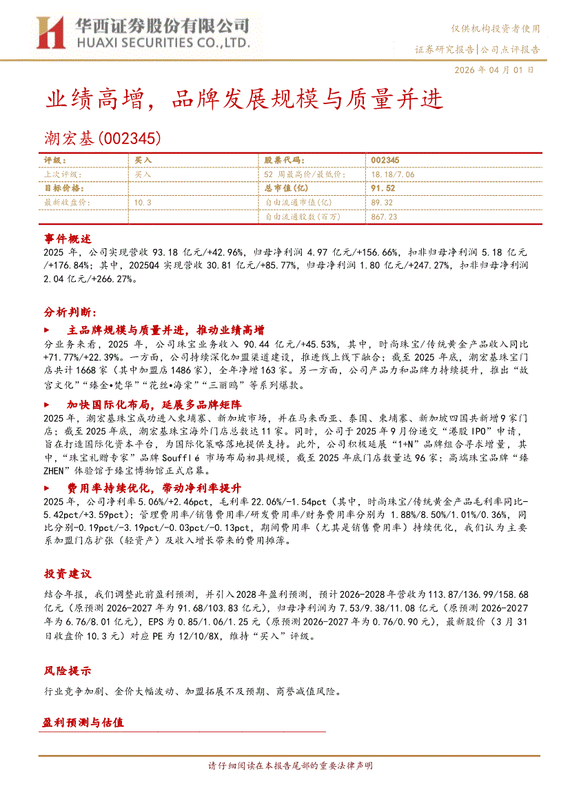 潮宏基:华西证券-潮宏基-002345-业绩高增,品牌发展规模与质量并进-260401