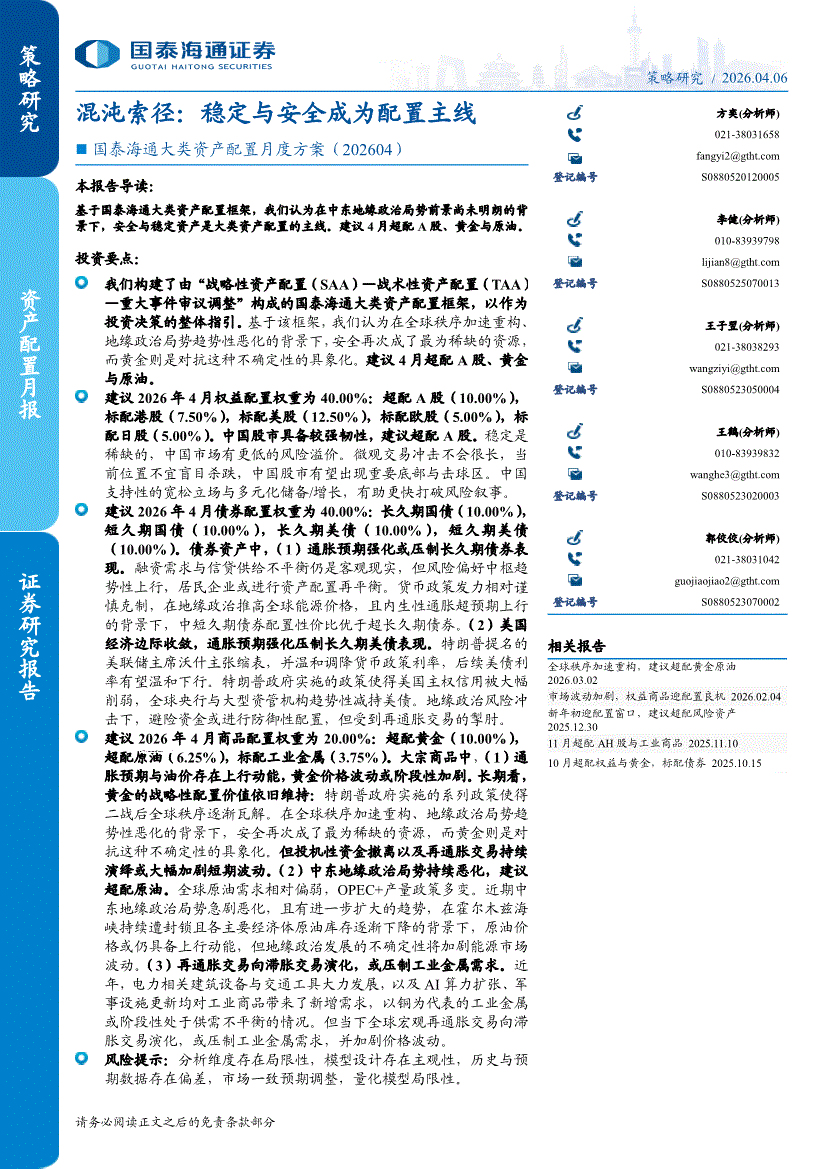 国泰海通证券-大类资产配置月度方案:混沌索径,稳定与安全成为配置主线-260406